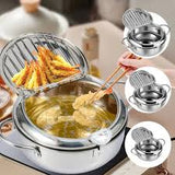 🍳 Rejilla superior antigrasa: Drena el exceso de aceite sin ensuciar tu cocina. 💧 Vertedor lateral: Vierte el aceite con facilidad, sin salpicar ni derramar.